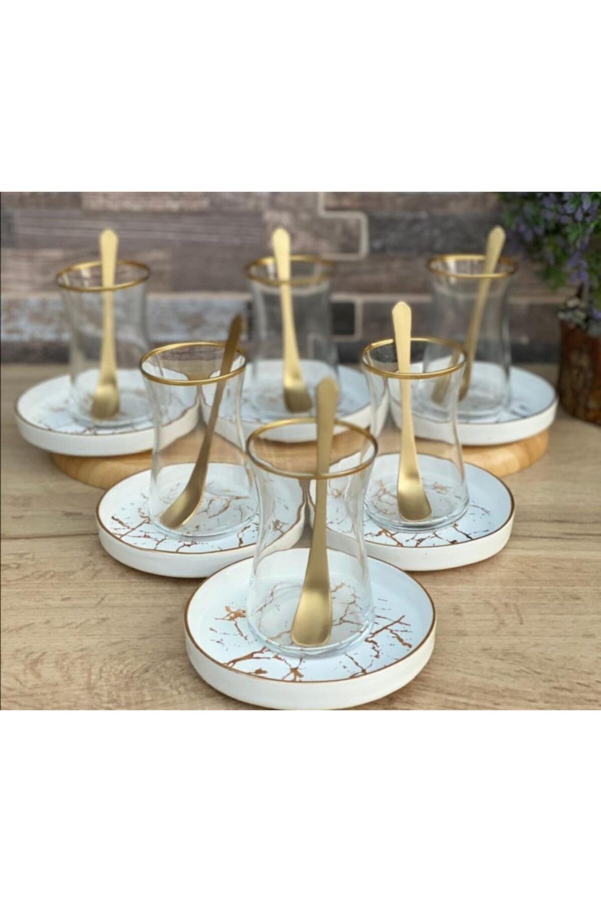 12 Parça 6 Kişilik Mermer Tiamo Çay Seti