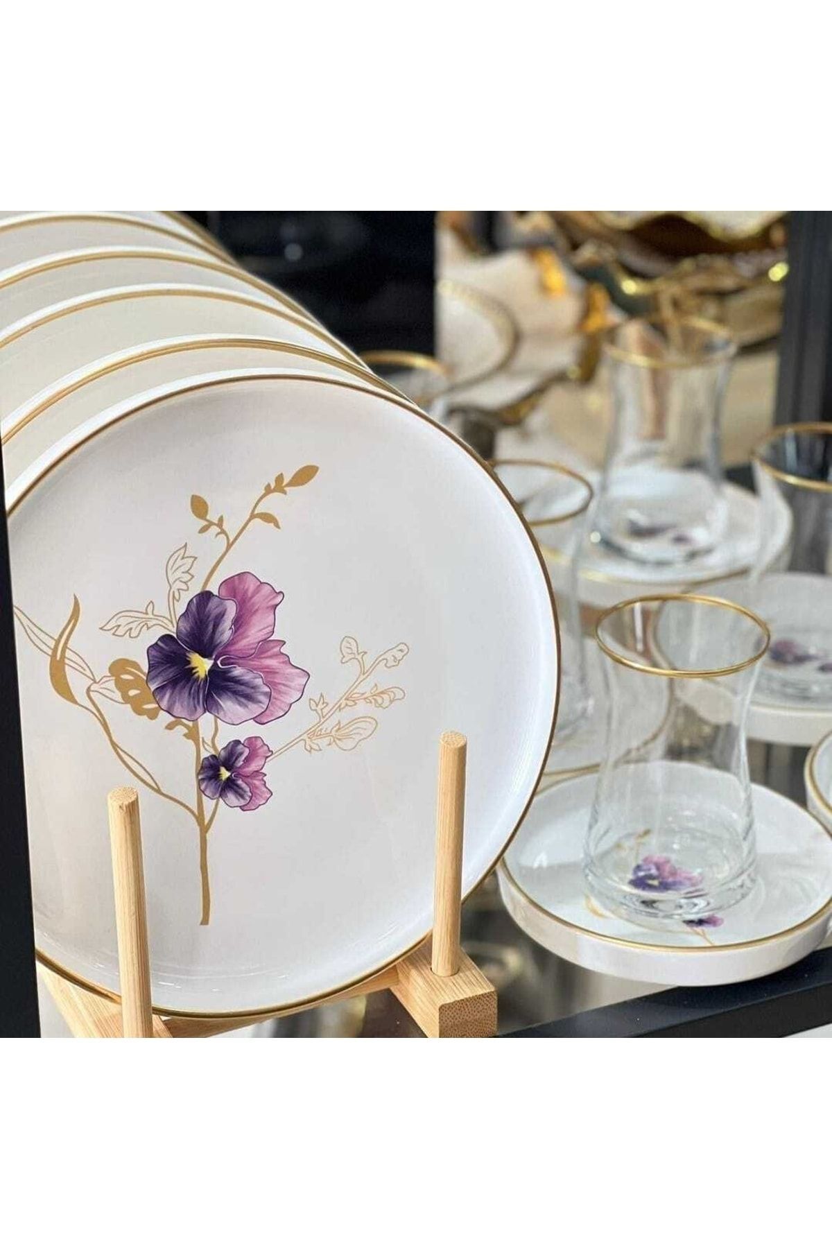 18 Parça Modern Desenli Çay Pasta Takımı
