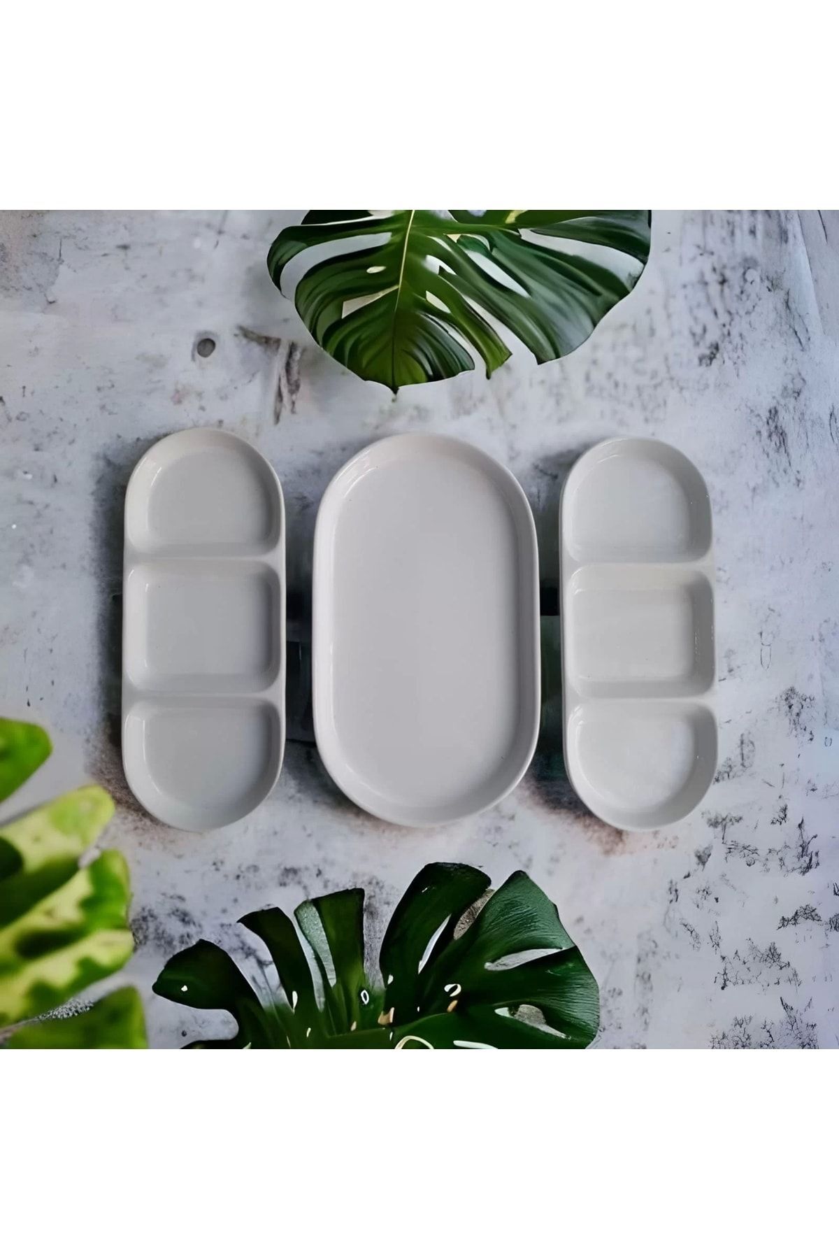 Lüks 4 adet dikdörtgen servis sunum; Birinci kalite seramikten imal edilmiştir.; 1 Adet 25x15 Büyük Tabak; 2 adet 3 Bölmeli 25x10 Tabak Toplam 3 Parçadır.; Kahvaltılık, Çerezlik Meyvelik Çok Amaçlı Olarak Kullababilirsiniz.; Bulaşık Makinasında Yıkanabilir.;