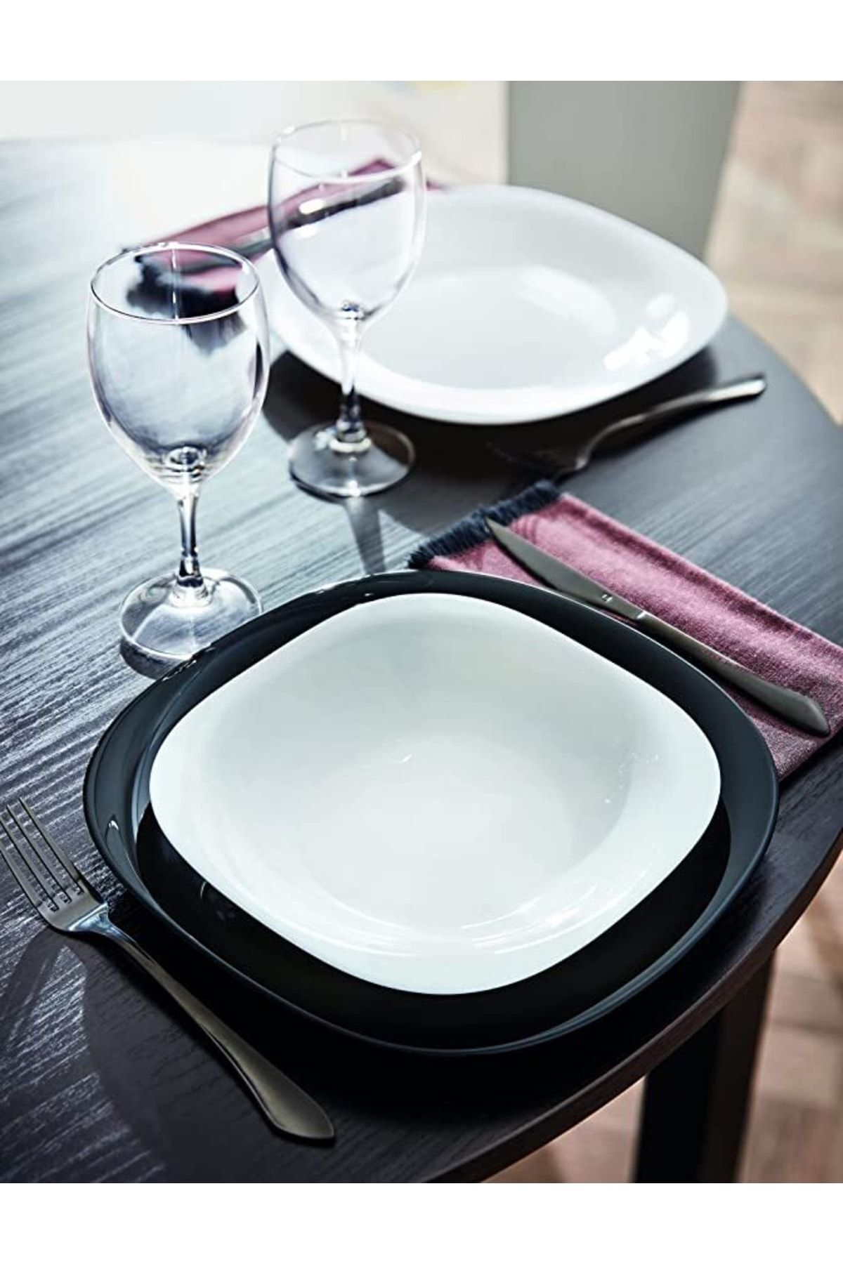 Carine 12 Parça 6 Kişilik Yemek Takımı.siyah 27 Cm.servis & Beyaz 21 Cm.çukur Yemek Tabağı.