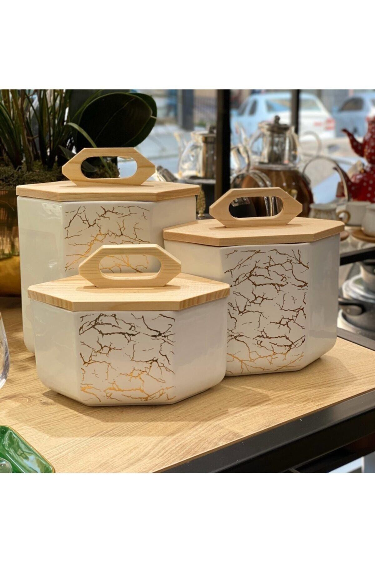 Seramik kavanoz kapakları kayın ağacından yapılmıştır. ; Kapakları Vakumludur; Ürün Ölçüleri: Küçük Boy: 10,5cm*20cm*18cm Orta Boy: 10,5cm*20,5cm*20cm Büyük Boy: 10,5cm*20,5cm*26cm;