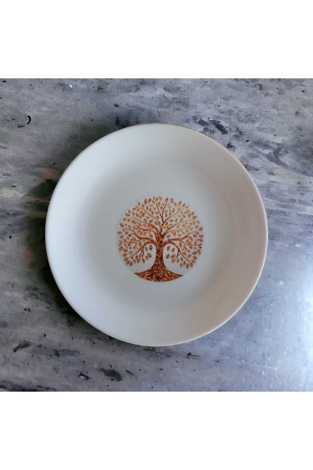 Özel Seri Hayat Ağacı Desenli Pasta Tabağı Beyaz 6'lı 19cm