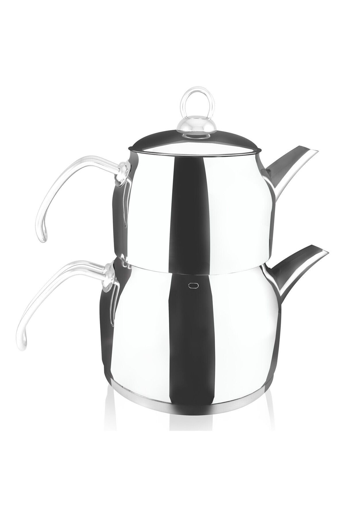 Sude Paslanmaz Çelik Metal Saplı Orta Boy Çaydanlık